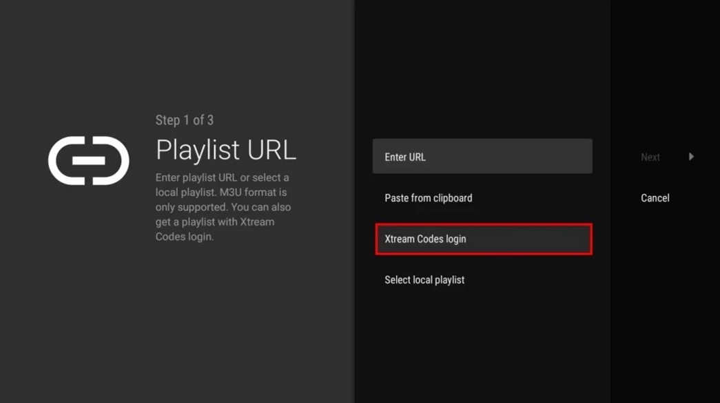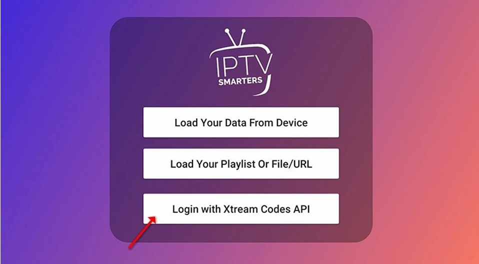 After installing the app, open it and choose the Xtream Codes API login method.